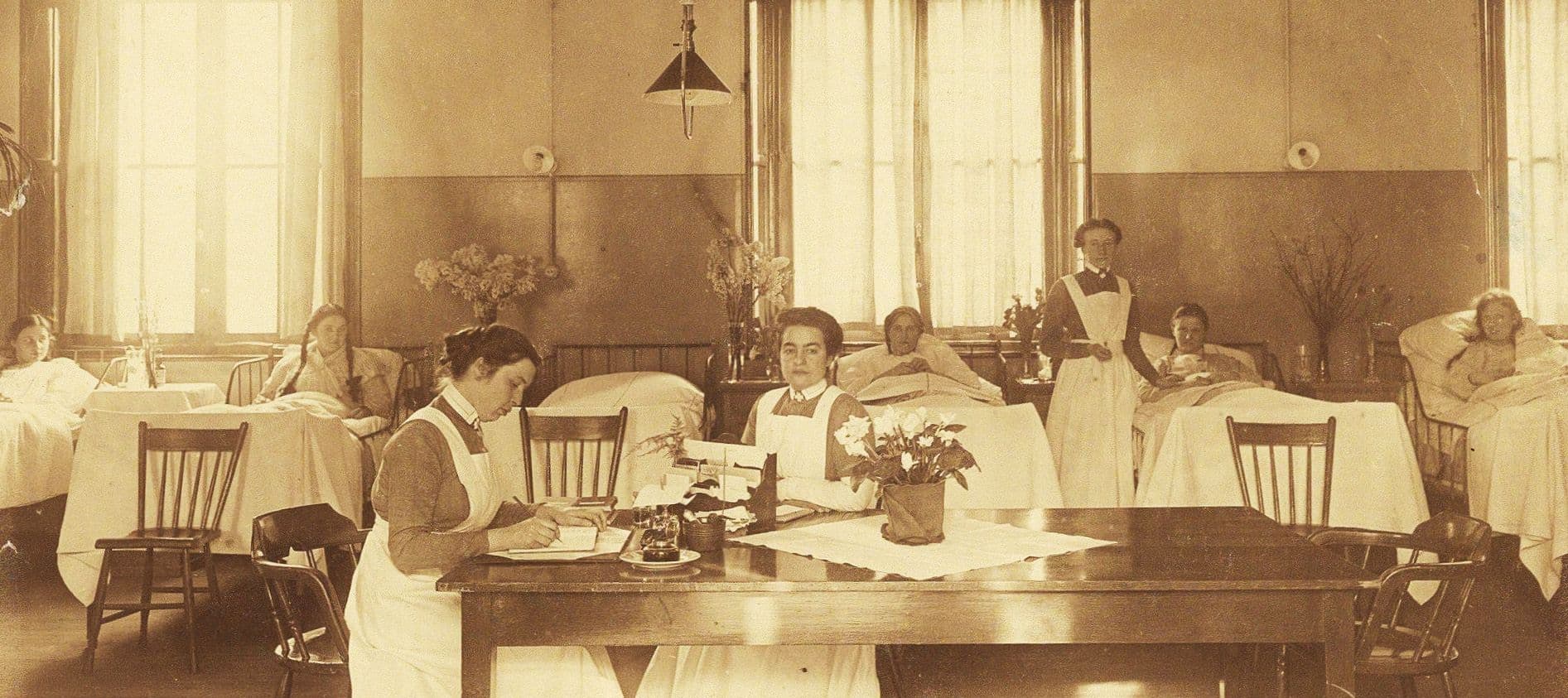 Over heel 1919 worden ruim 14.000 patiënten behandeld in het Wilhelmina Gasthuis (WG), met 1.375 bedden het grootste ziekenhuis van de stad. Bijna 1.000 van hen overlijden dat jaar. Alle Amsterdamse ziekenhuizen te samen verzorgen in 1919 in totaal 46.803 patiënten, van wie er ruim 3.000 sterven. Onder de doden relatief veel kinderen, die met name overlijden aan de gevolgen van difterie (ook wel kroep genoemd) en mazelen. Maar het goede nieuws is dat de hygiëne in Amsterdam langzaamaan verbetert.