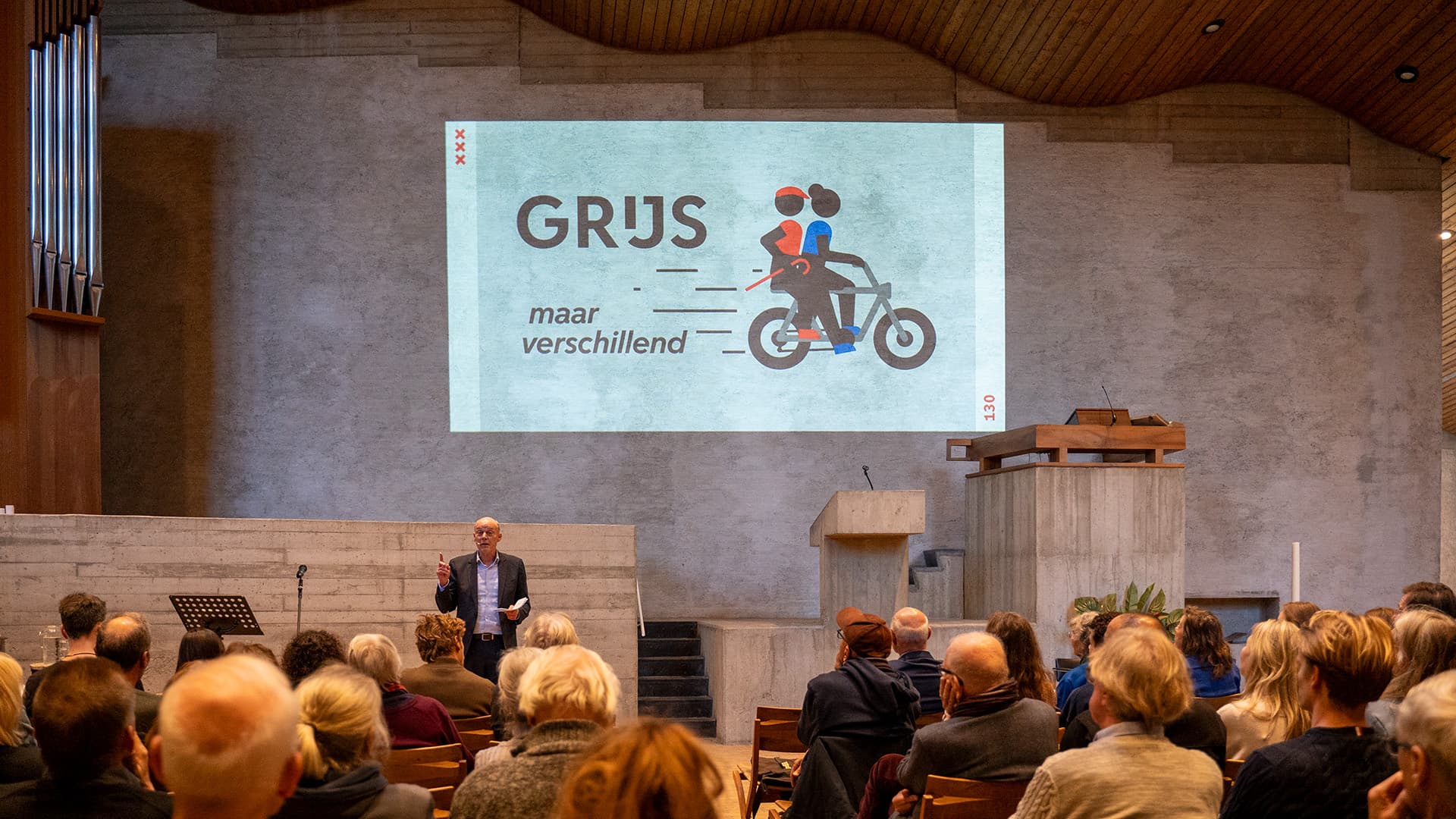 Jeroen Slot opent het symposium 'Grijs maar verschillend'.