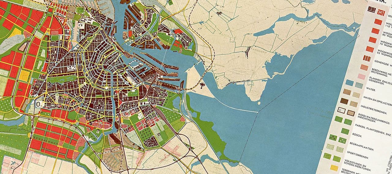 Grote foto: Het Algemeen Uitbreidingsplan van Amsterdam van van Eesteren uit 1935 (Stadsarchief Amsterdam)