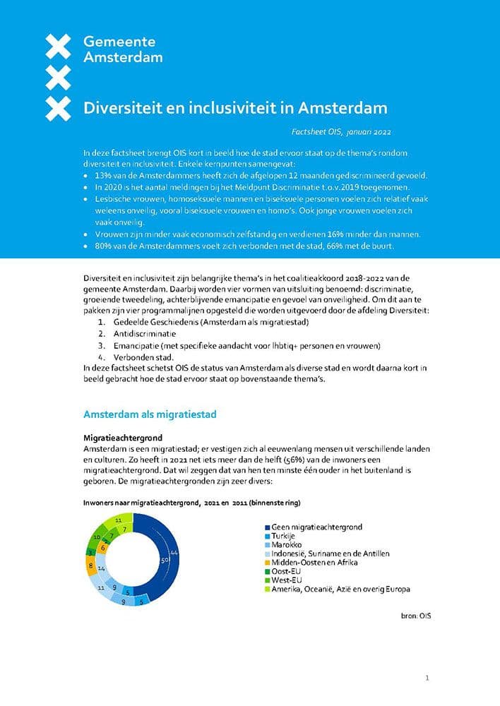 In deze factsheet schetst OIS hoe Amsterdam ervoor staat op de volgende thema’s die betrekking hebben op de programmalijnen van het beleid rondom diversiteit en inclusiviteit.
