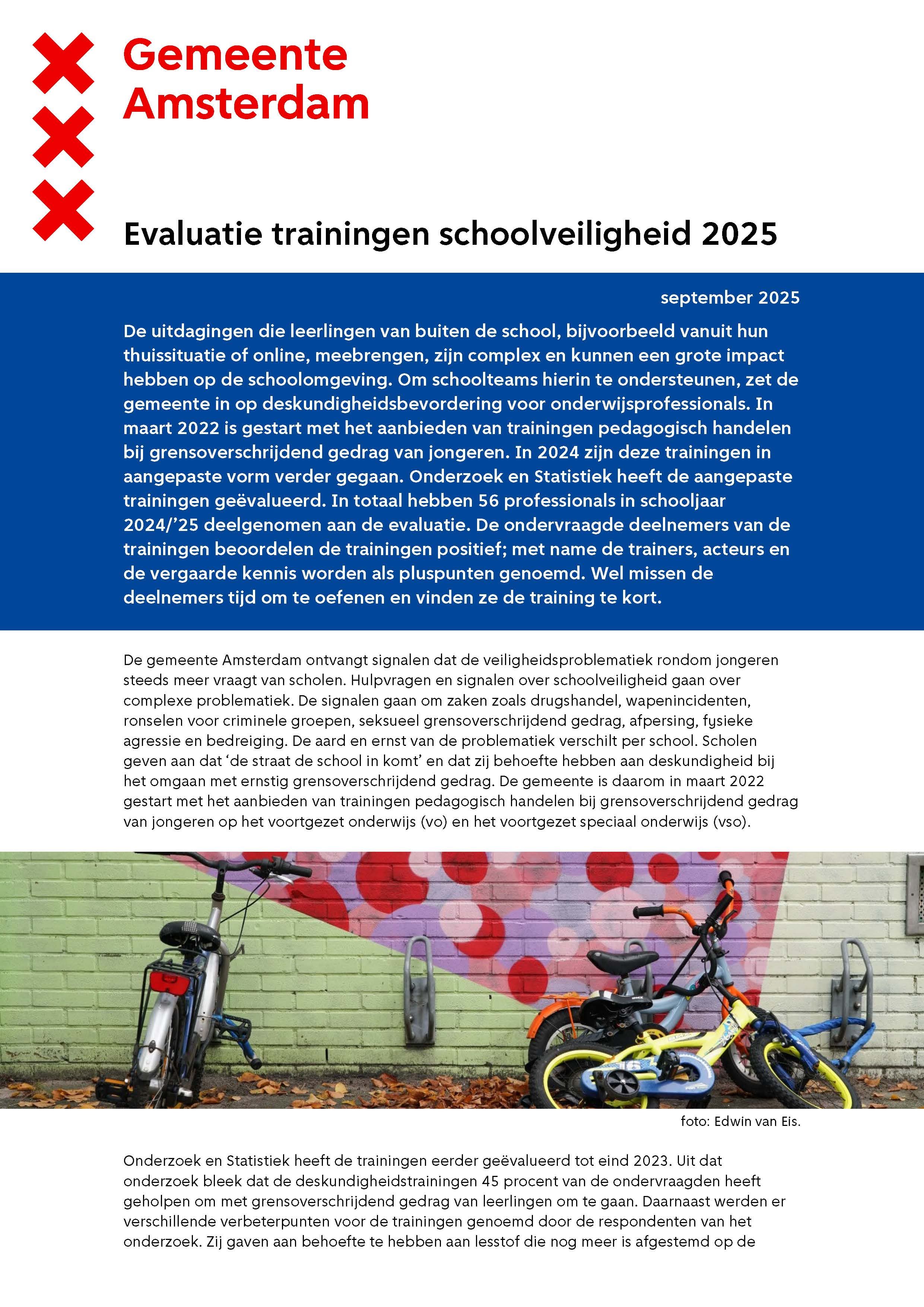 Onderwijsprofessionals op het voorgezet (speciaal) onderwijs beoordelen een training die hen ondersteunt bij grensoverschrijdend van jongeren overwegend positief. Gemiddeld geven zij een 7,9 als rapportcijfer. Het grootste deel van de professionals geeft aan dat de training ze heeft geholpen. Dat blijkt uit een nieuwe evaluatie van trainingen over schoolveiligheid die de gemeente Amsterdam aanbiedt.