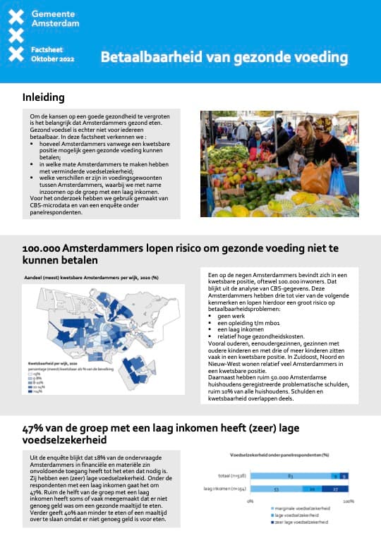 Om de kansen op een goede gezondheid te vergroten is het belangrijk dat Amsterdammers gezond eten. Gezond voedsel is echter niet voor iedereen betaalbaar.