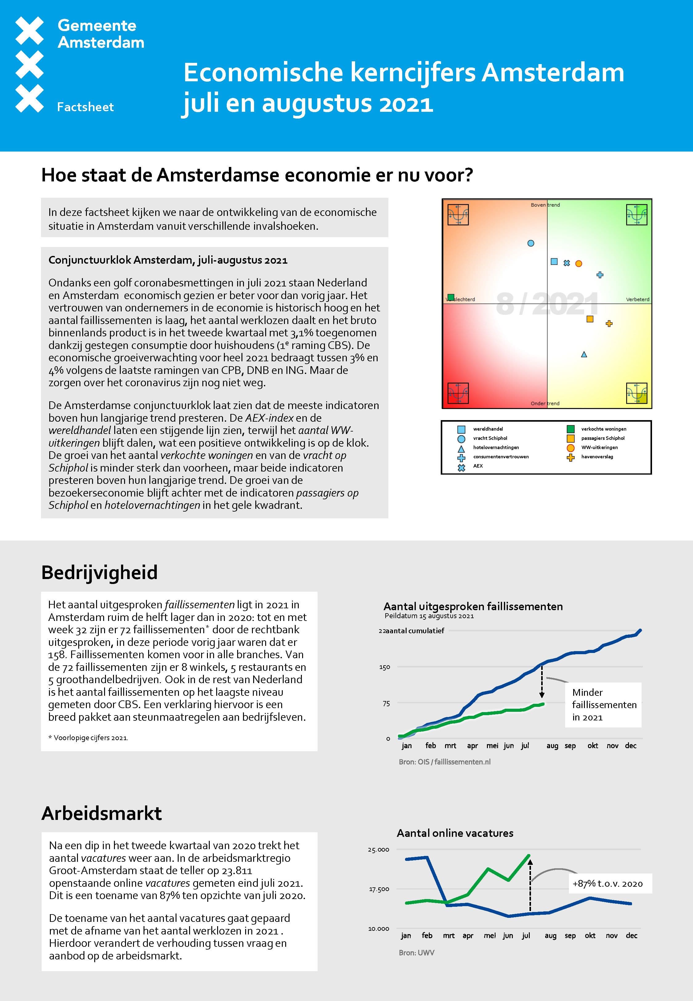 Factsheet Economische kerncijfers Amsterdam juli en augustus 2021