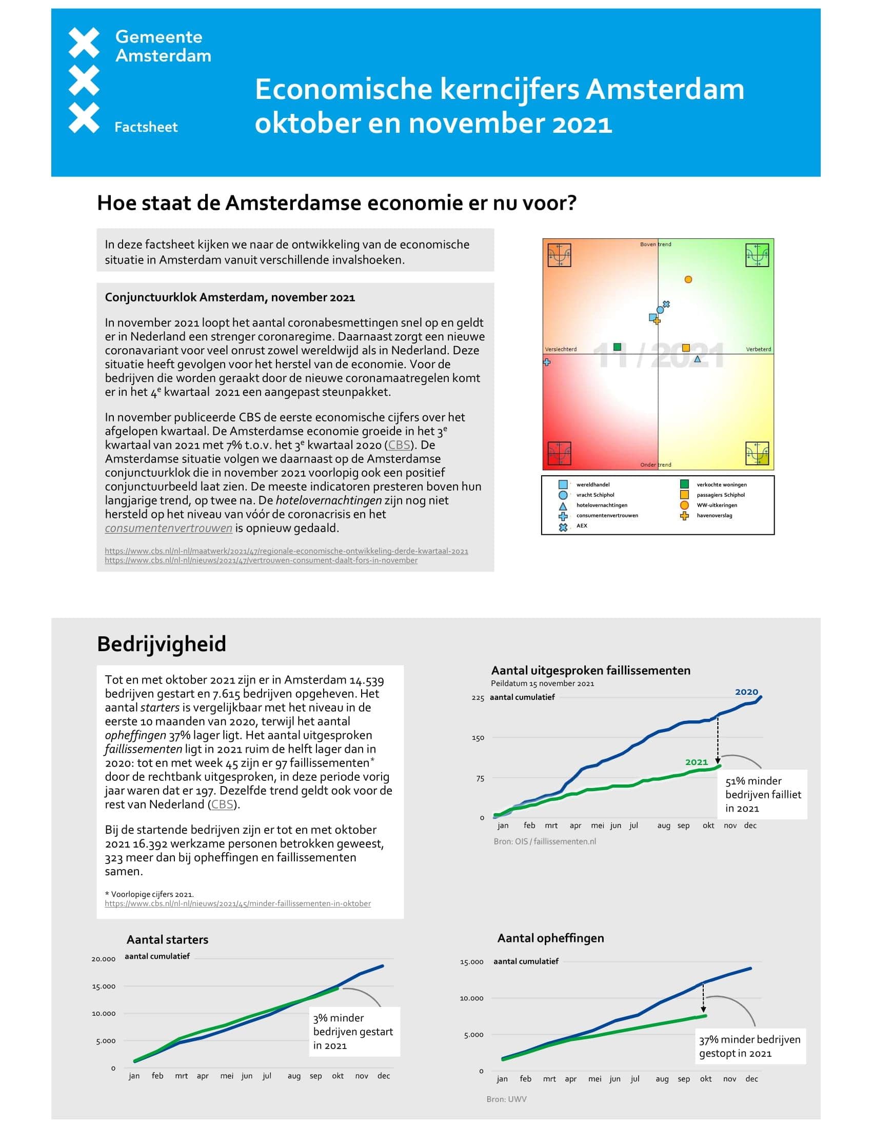 Factsheet Economische kerncijfers Amsterdam oktober en november 2021