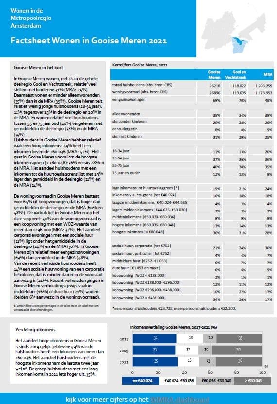 Factsheet Wonen in Gooise Meren 2021 (WiMRA)