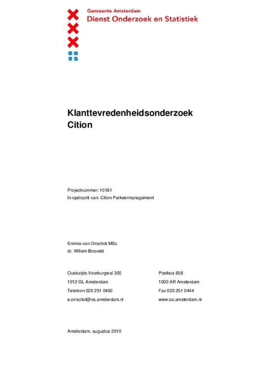 Cition is de parkeerbeheerder in het grootste deel van Amsterdam. Cition wil de dienstverlening aan de klanten verbeteren. Daarom heeft Dienst Onderzoek en Statistiek (O+S) een klanttevredenheidsonderzoek uitgevoerd. De meeste klanten van Cition zijn mensen met een parkeervergunning en mensen die op de wachtlijst staan voor een vergunning. Cition houdt zich ook bezig met de controle op foutparkeren en het uitdelen van boetes. Op dat deel van de werkzaamheden had het onderzoek geen betrekking.
