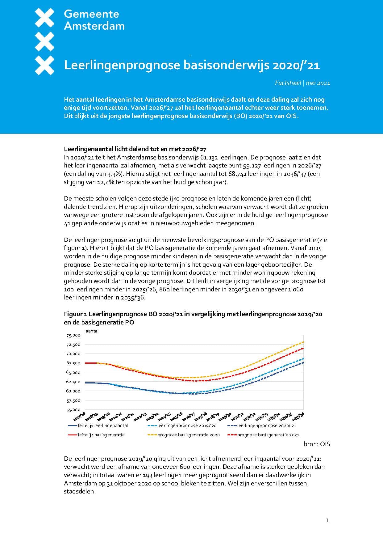 Het aantal leerlingen in het Amsterdamse basisonderwijs daalt en deze daling zal zich nog enige tijd voortzetten. Vanaf 2026/’27 zal het leerlingenaantal echter weer sterk toenemen. Dit blijkt uit de jongste leerlingenprognose basisonderwijs (BO) 2020/’21 van OIS.