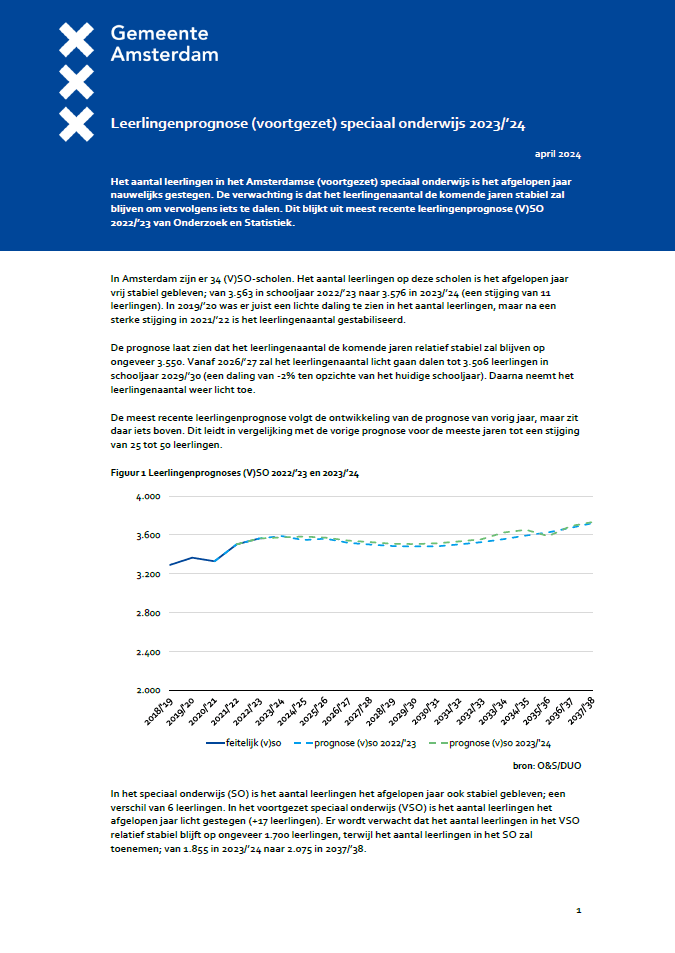 Leerlingenprognose (voortgezet) speciaal onderwijs 2023/’24