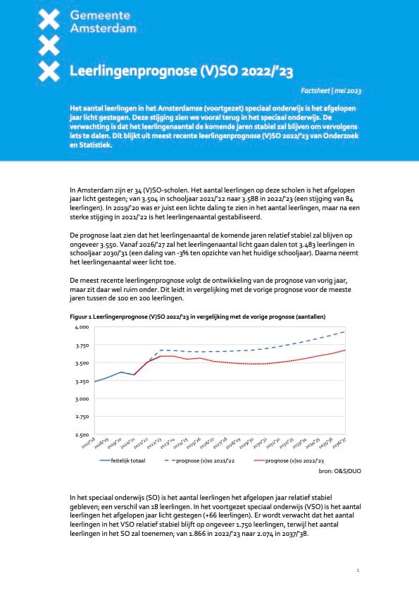 Het aantal leerlingen in het Amsterdamse (voortgezet) speciaal onderwijs is het afgelopen jaar licht gestegen. Deze stijging zien we vooral terug in het speciaal onderwijs. De verwachting is dat het leerlingenaantal de komende jaren stabiel zal blijven om vervolgens iets te dalen. Dit blijkt uit meest recente leerlingenprognose (V)SO 2022/’23 van Onderzoek en Statistiek.