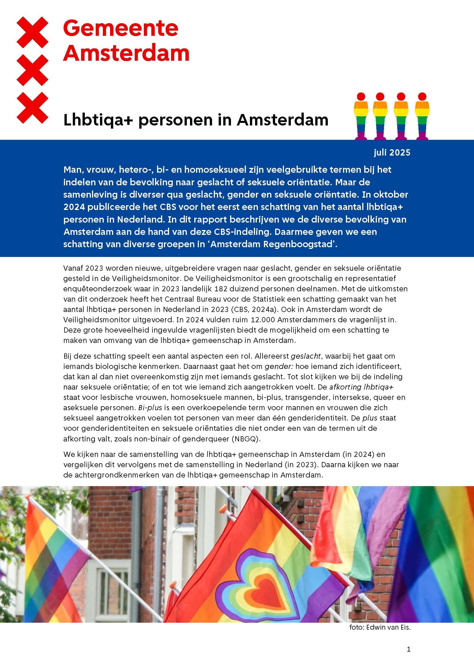 21 procent van de inwoners van de gemeente Amsterdam (hierna: Amsterdammers) behoort tot de lhbtiqa+-gemeenschap. Dit komt neer op ongeveer 193 duizend inwoners in 2024. In Nederland is dit aandeel 18 procent.
