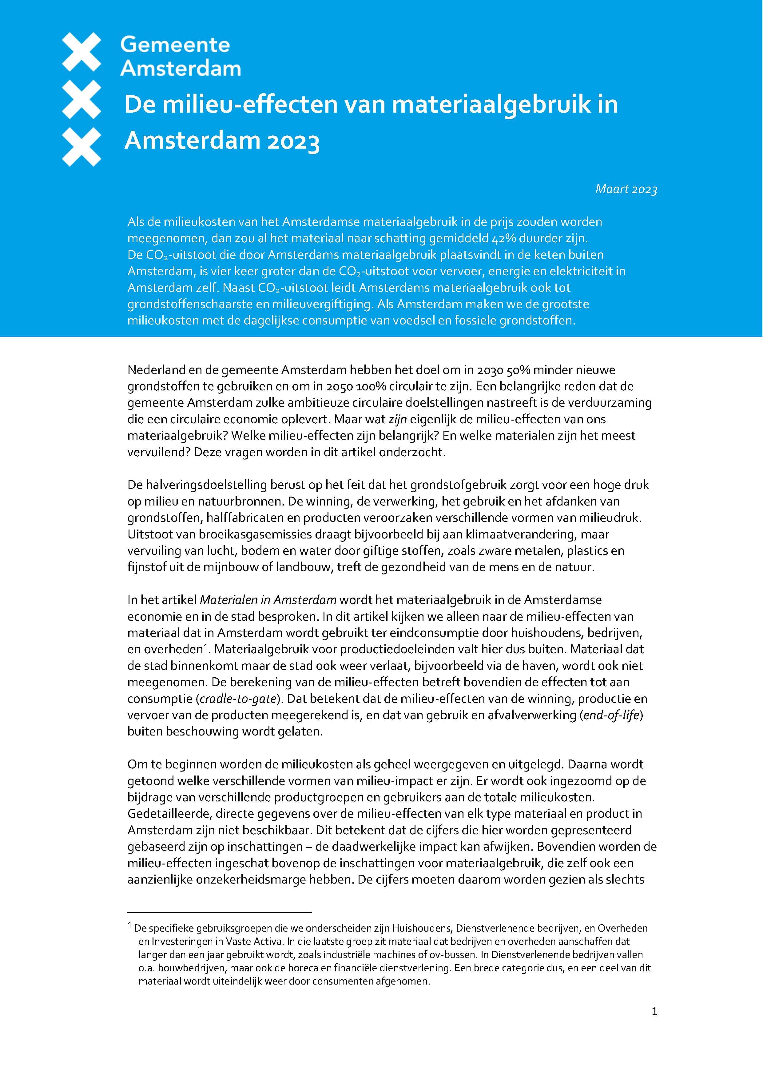 De milieu-effecten van materiaalgebruik in Amsterdam 2023