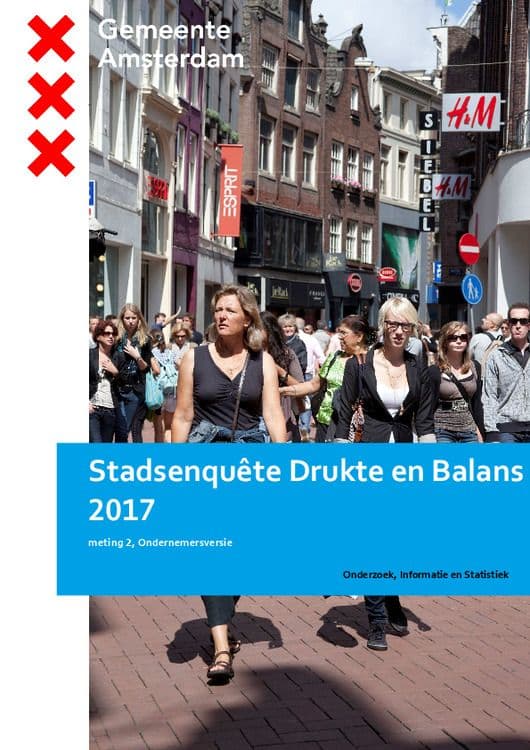Eind 2017 heeft OIS voor de tweede keer de stadsenquête Drukte en Balans uitgevoerd met voor ondernemers een deels aparte vragenlijst. Dit is deels een herhaling van het onderzoek uit 2016 waarbij de eerder gehanteerde indeling naar Verblijven, Verplaatsen en Recreëren deze keer is losgelaten. Dit keer ligt de nadruk meer op beleving van drukte in de stad en buurt, op oorzaken en gevolgen van drukte in de buurt, op overlast van drukte, op bekendheid met maatregelen die de gemeente neemt om drukte in de stad in goede banen te leiden en is er aandacht voor het draagvlak voor toerisme. Amsterdammers konden zelf ook met suggesties komen om drukte in de stad in goede banen te leiden.