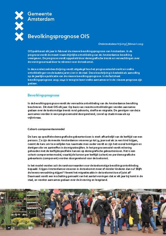 In deze onderzoeksbeschrijving wordt uitgelegd hoe het prognosemodel werkt en welke ontwikkelingen we de laatste jaren zien in de stad. Deze beschrijving is bedoeld als aanvulling op de jaarlijkse publicatie van de nieuwe bevolkingsprognose. In de factsheet bevolkingsprognose 2019-2040 is terug te lezen welke aannames er in de nieuwe prognose zijn gedaan.