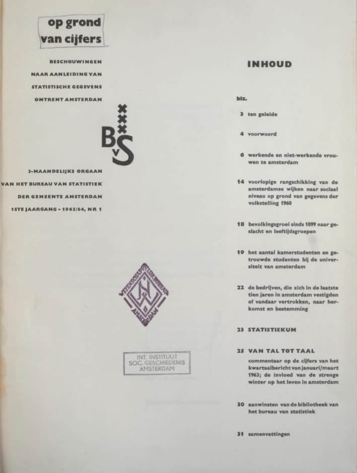 Van 1963 tot 1975 publiceerde het Bureau van Statistiek iedere drie maanden 'Op grond van cijfers: beschouwingen naar aanleiding van statistische gegevens omtrent Amsterdam'. Deze publicatie bevat de vier afleveringen van de eerste jaargang.