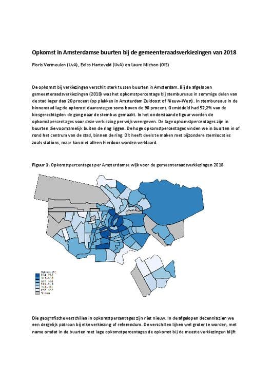 De opkomst bij verkiezingen verschilt sterk tussen buurten in Amsterdam. Bij de afgelopen gemeenteraadsverkiezingen (2018) was het opkomstpercentage bij stembureaus in sommige delen van de stad lager dan 20 procent (op plekken in Amsterdam Zuidoost of Nieuw-West). In stembureaus in de binnenstad lag de opkomst daarentegen soms boven de 90 procent. Gemiddeld had 52,2 procent van de kiesgerechtigden de gang naar de stembus gemaakt.