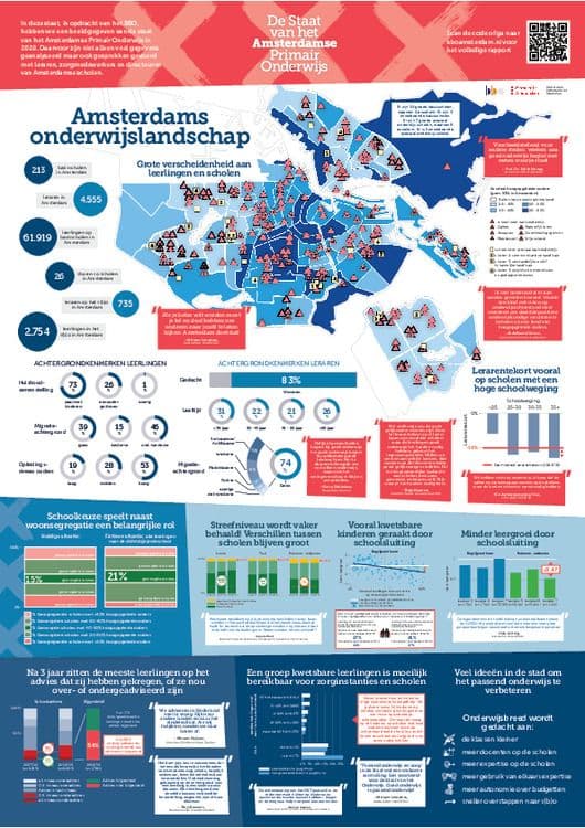 In deze rapportage geven we een beeld van de staat van het Amsterdamse primair onderwijs. Daarvoor zijn niet alleen veel gegevens geanalyseerd maar ook gesprekken gevoerd met leraren, zorgmedewerkers en directeuren van Amsterdamse scholen.