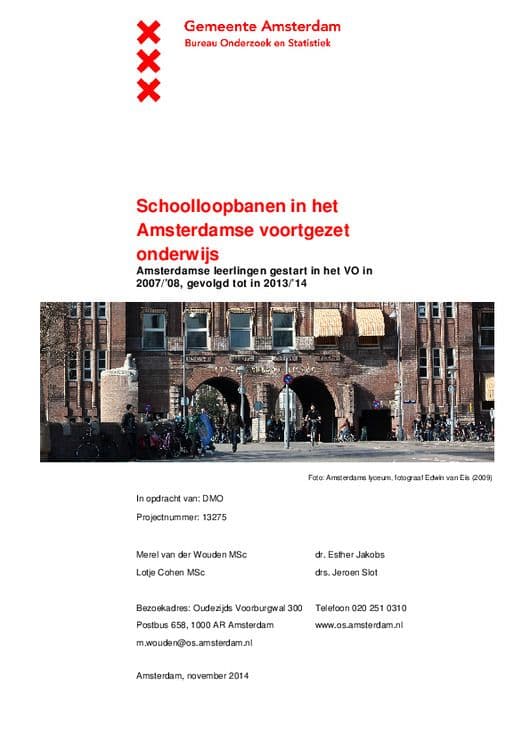 In 2013 heeft O+S in opdracht van de Amsterdamse Dienst Maatschappelijke Ontwikkeling (DMO) voor het eerst onderzoek gedaan naar de schoolloopbanen van Amsterdamse leerlingen in het voortgezet onderwijs (VO), de VO schoolloopbanen. Anderhalf jaar later is dit onderzoek herhaald.