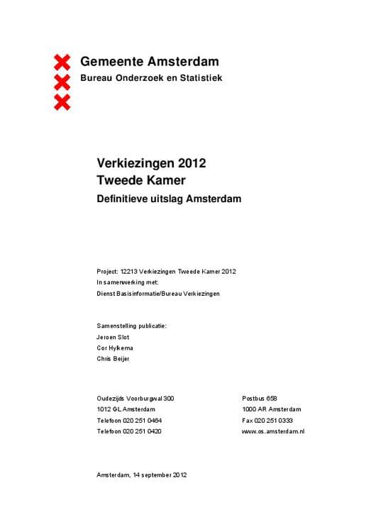 In deze publicatie staan alle uitslagen van de verkiezingen Tweede Kamer van 2012 voor de gemeente Amsterdam.