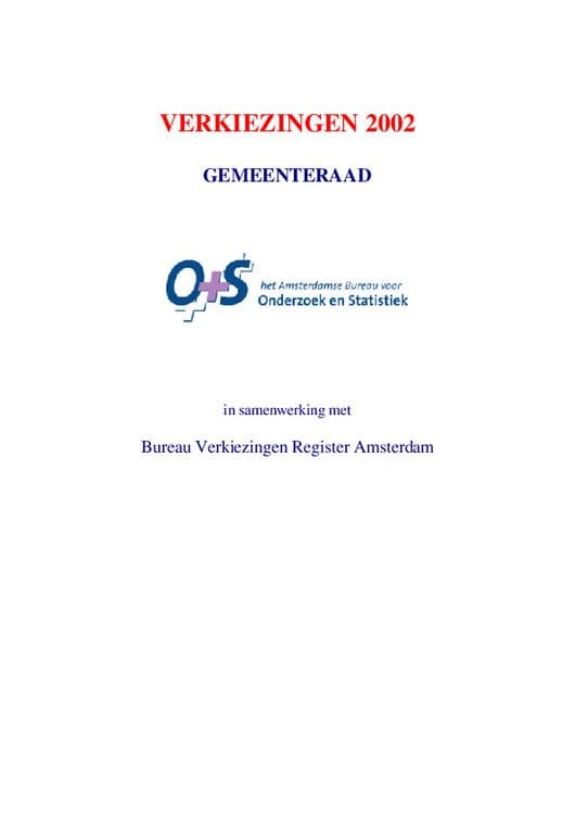 In deze publicatie staan alle uitslagen van de verkiezingen van de gemeenteraad van 2002 voor de gemeente Amsterdam.