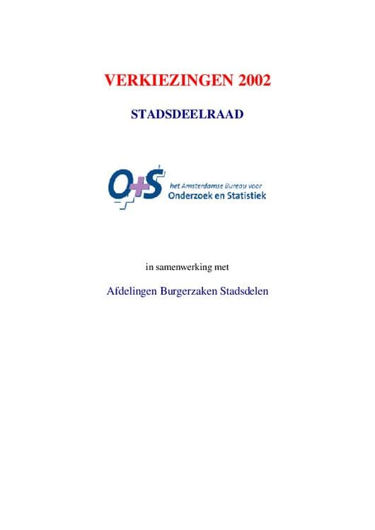 In deze publicatie staan alle uitslagen van de verkiezingen van de stadsdeelraden van 2002 voor de gemeente Amsterdam.