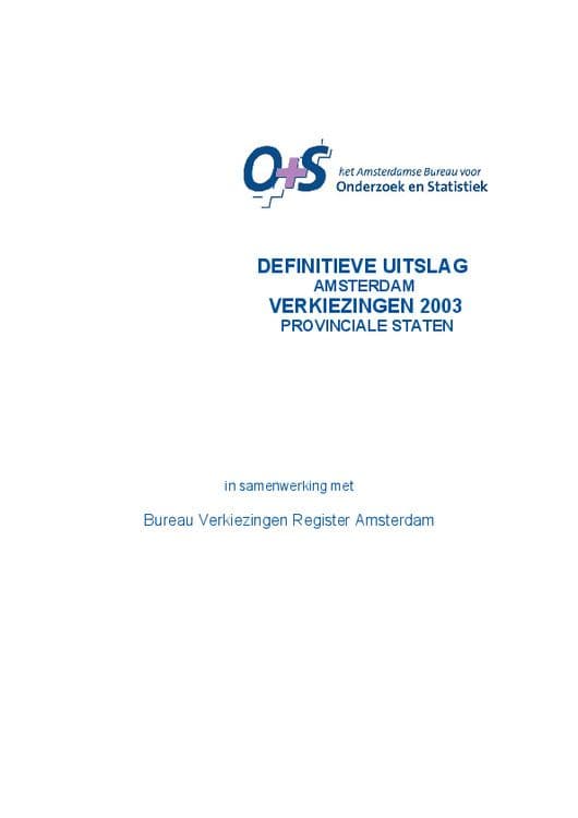 In deze publicatie staan alle uitslagen van de verkiezingen van de Provinciale Staten van 2003 voor de gemeente Amsterdam.