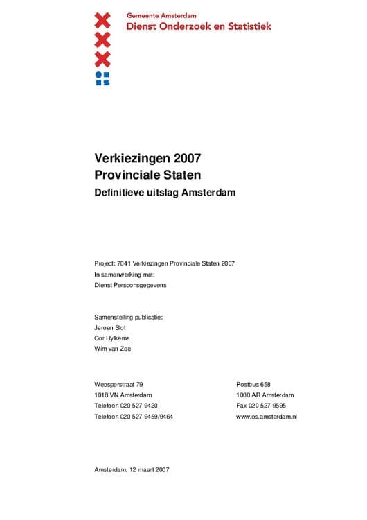 In deze publicatie staan alle uitslagen van de verkiezingen van de Provinciale Staten van 2007 voor de gemeente Amsterdam.