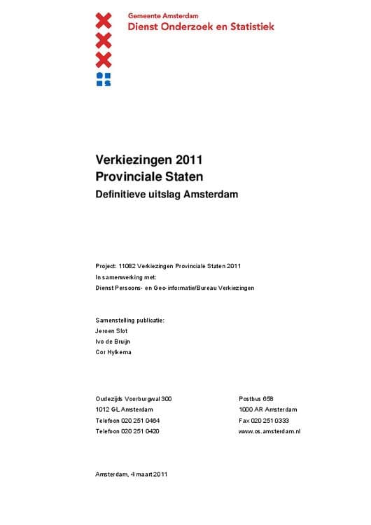 In deze publicatie staan alle uitslagen van de verkiezingen Provinciale Staten van 2011 voor de gemeente Amsterdam.