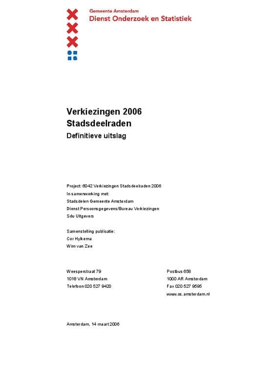 In deze publicatie staan alle uitslagen van de verkiezingen van de stadsdeelraden van 2006 voor de gemeente Amsterdam.
