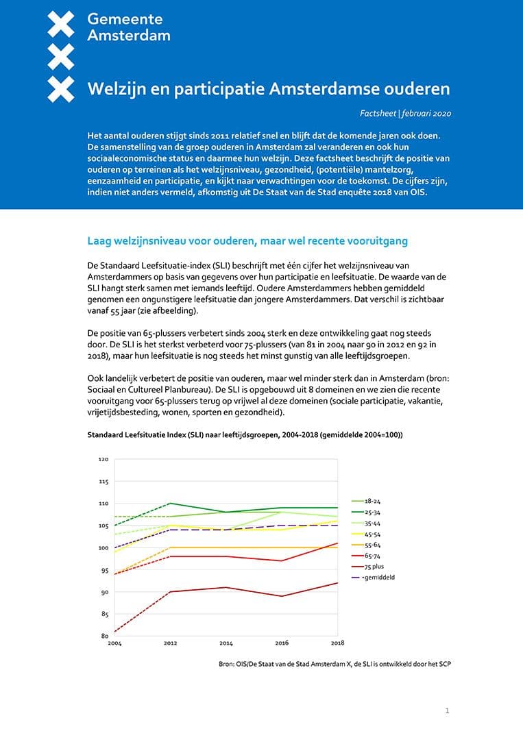 Deze factsheet gaat in op de huidige welzijnspositie van ouderen, met een doorkijk naar de te verwachten veranderingen voor deze groep.